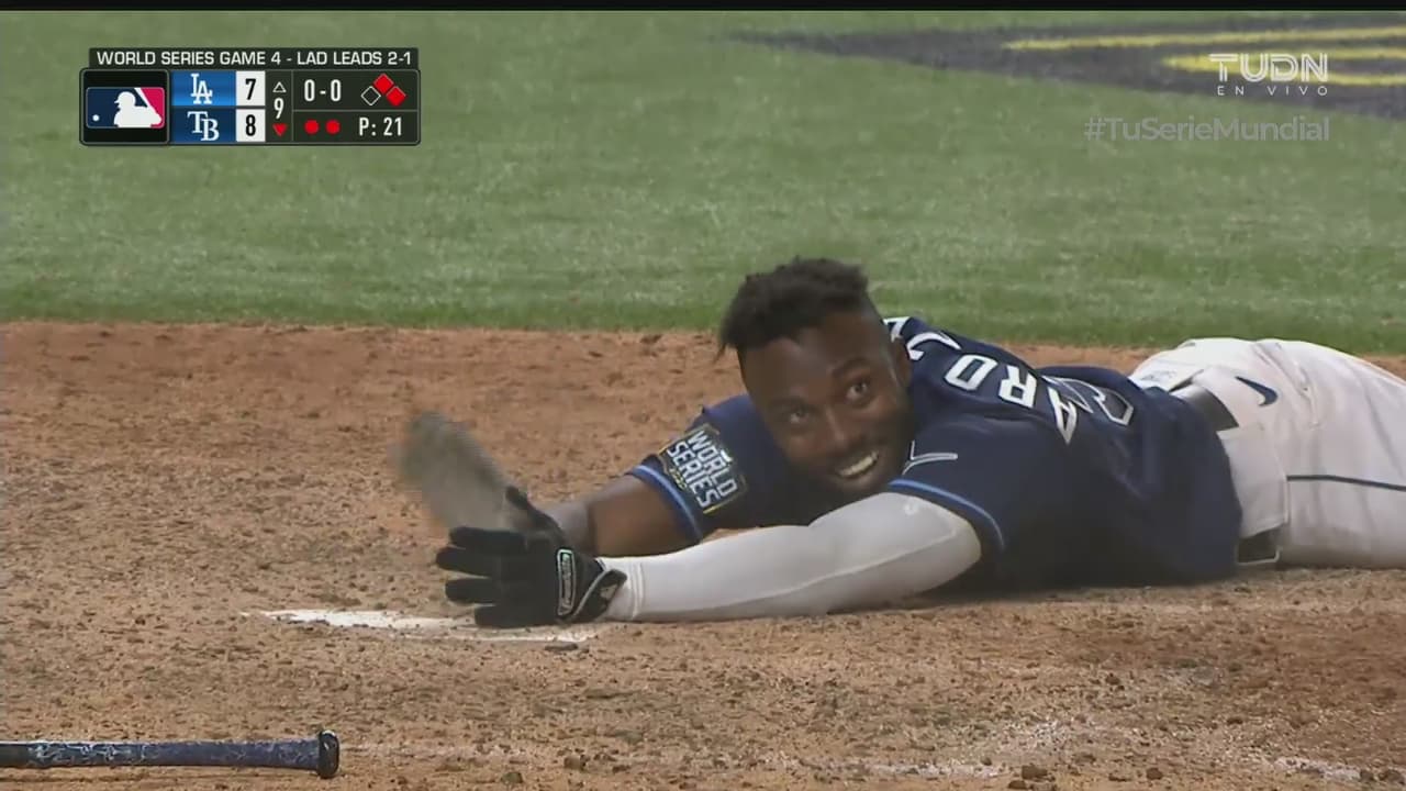 Arozarena, cayéndose y todo, hace la carrera del triunfo gracias al sencillo que pegó Phillips y a una serie de errores de los Dodgers con Taylor en el center field y luego Will Smith perdiendo la pelota en el home para que el cubano pudiera anotar.
