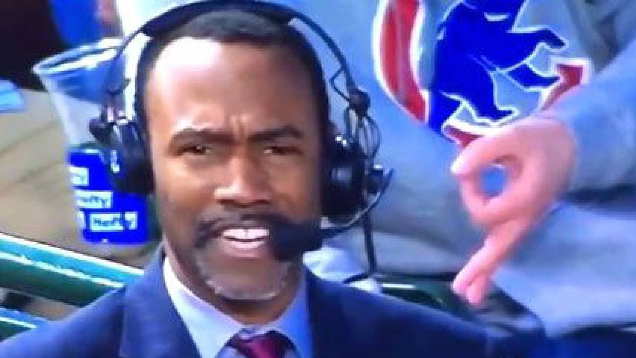 El hombre, que vestía una sudadera gris de los Cachorros y pantalón azul, hizo con la mano la seña de “ OK” invertido cerca de la cabeza de Glanville al momento de la transmisión.