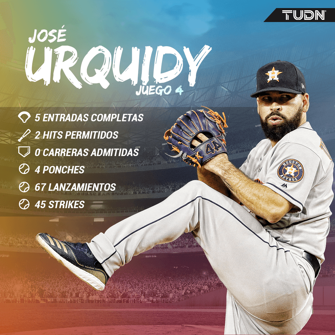 El mexicano José Urquidy tuvo un debut espectacular en la Serie Mundial: abrió el Juego 4 por los Houston Astros, lanzó cinco entradas completas, admitió solo dos hits y ponchó a cuatro, dejando ganado el partido.