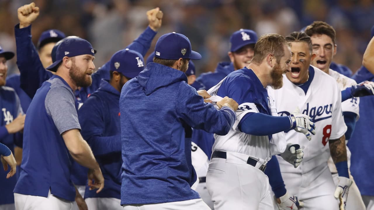 La reacción de los anfitriones no tardó en llegar y Yasiel Puig evitó que se acaba el partido en ese acto, gracias a un error de Ian Kinsler que permitió el empate en las piernas del propio Muncy. Después de eso requirieron cinco entradas más para dirimir al ganador del tercer cotejo de la serie al mejor de siete.