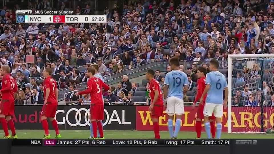 Hasta el final del primer tiempo casi todo estuvo pintado de celeste, incluyendo los dos goles del cuadro neoyorquino marcados por un afilado Villa (el primero, de penal; el segundo, tras acomodar el balón con su antebrazo en el área de TFC). El asturiano y Diskerud volvieron a tener oportunidades concretas de ampliar el marcador antes del descanso. En tiempo de descuento, sin embargo, Damien Perquis anotó el 2-1 parcial tras un centro de Giovinco desde la derecha.