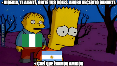 Al inicio del segundo tiempo Mascherano abrazó a un jugador nigeriano y el árbitro sentenció penal, que el video únicamente corroboró. Moses puso de cabeza a la albiceleste a los 51 minutos con el 1-1 desde el manchón.