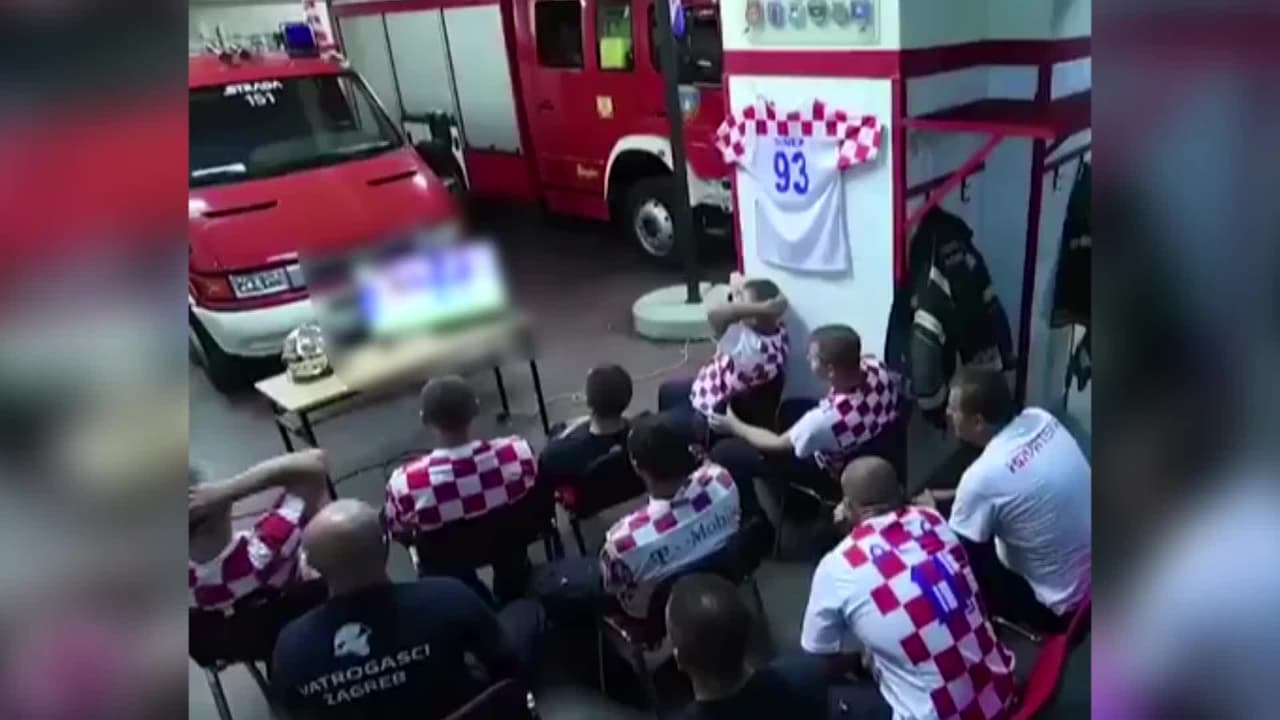 Un video que circula en redes muestra a un grupo de bomberos croatas perderse el pase a semifinales de su selección en tanda de penales tras activarse la alarma de emergencia.