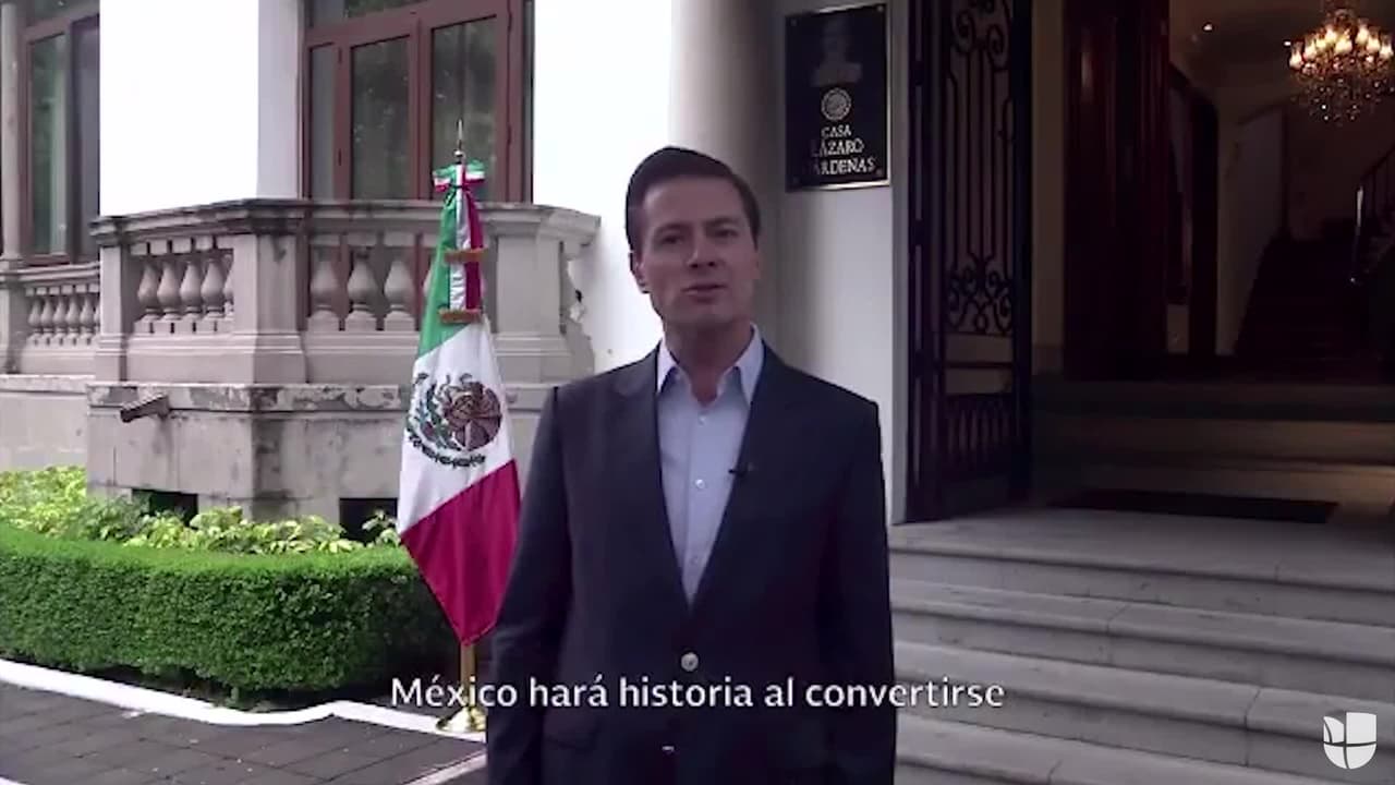 El actual Presidente de México, Enrique Peña Nieto, usó sus redes sociales para felicitar a la candidatura tripartita por el triunfo en la designación para el Mundial de 2026.