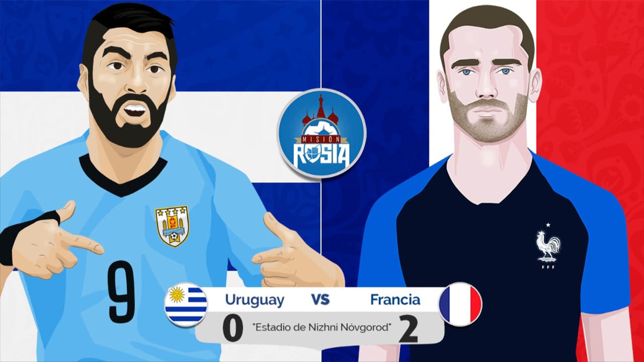 Francia se convirtió en la primera selección en avanzar a las semifinales de la Copa del Mundo tras derrotar por marcador de 2-0 a Uruguay en cotejo celebrado en el Estadio de Nizhni Nóvgorod.