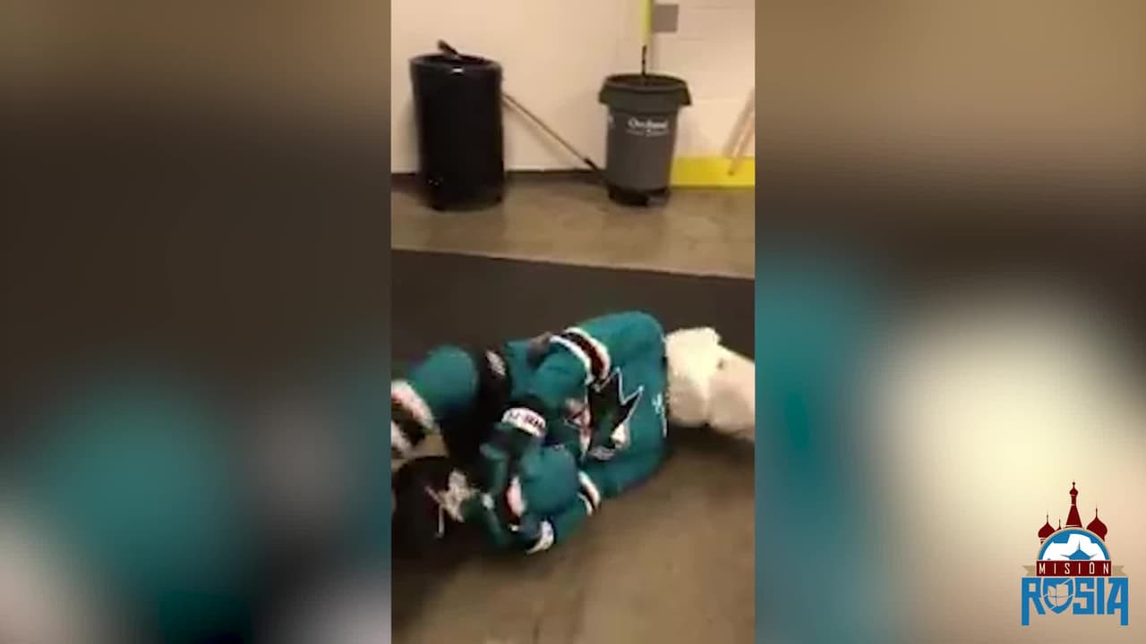Video ¡Era de tarjeta roja! La mascota de los San Jose Sharks sufre un "Neymar"