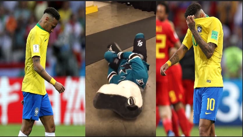 Y es que la mascota de San José Sharks hizo una singular parodia, cuando tras ir caminando sobre el pasillo, es tocado por un bastón y de inmediato se deja caer, haciendo varias volteretas en el piso, retorciéndose del dolor, vaya como si el mismísimo astro brasileño estuviera metido en la botarga, en el tuit se puede leer la leyenda: “Lo que se tenía que hacer! #Neymar”.