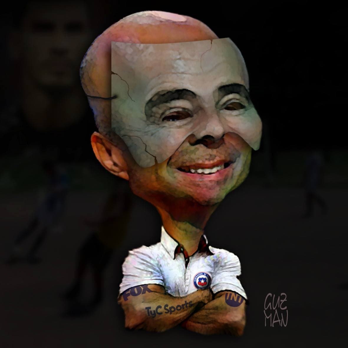 El padre de Nahuel, quien es caricaturista, dibujó a un Jorge Sampaoli con una careta y peculiares tatuajes de televisoras en los brazos en referencia a las presiones que habría recibido el técnico para convocar al portero de River Plate, Franco Armani.