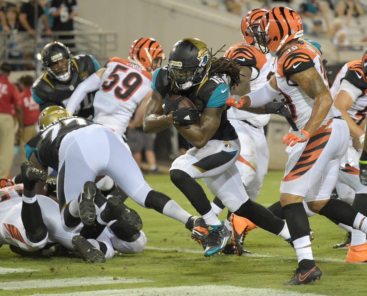 Joe Banyard anotó en acarreo de 7 yardas. El quarterback suplente Chad Henne conectó pase de touchdown con Neal Sterling en jugada de 3 yardas. Finalmente Hayes Pullard interceptó un pase a Joe Licata, tercer quarterback de los Bengals, y lo regresó 62 yardas hasta la zona de anotación. Blake Bortles, quarterback titular de Jacksonville, completó 10 de 16 para 52 yardas pero no pudo producir puntos mientras estuvo en el terreno de juego.