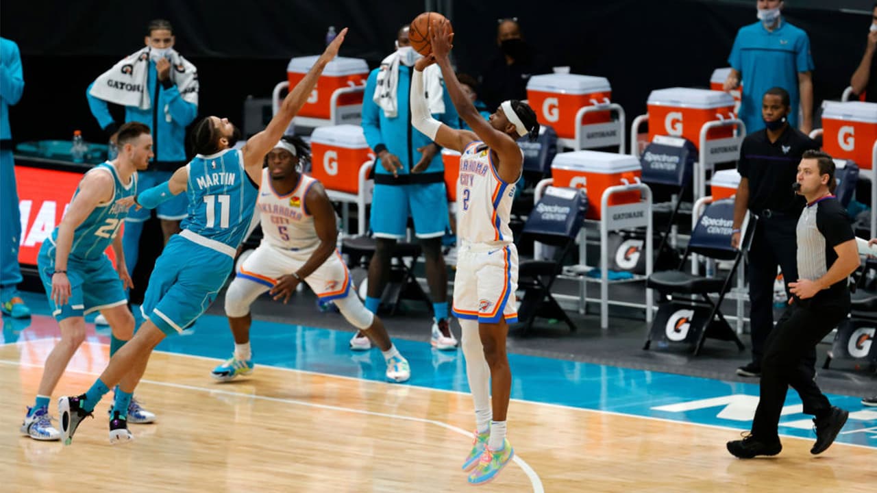 El escolta anotó un doble-doble para figurar en el triunfo ante Portland; Westbrook hace marca histórica.