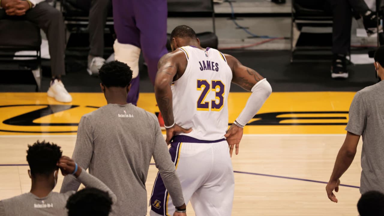 LeBron James disputaba un balón con Solomon Hill, pese a que intentó mantenerse en el encuentro, al final debió salir antes del medio tiempo.