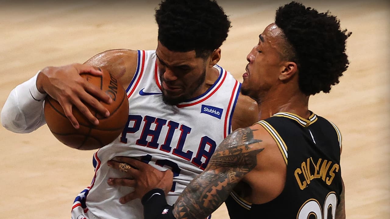 Joel Embiid, la estrella de Philadelphia, firmó 22 puntos y 13 rebotes en un tenso partido en el que tuvo varios choques con el ala-pívot de los Hawks, John Collins.