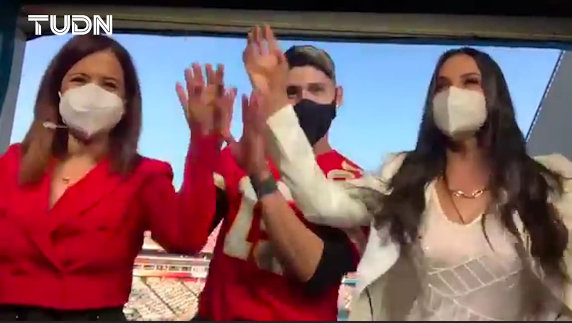 ¡Ambientazo previo al #SBLVEnTUDN! @alanpulido está en Tampa con @AdrianaMonsalve y @GeorginaHolguin en el palco de transmisión apoyando a #ChiefsKingdom y... ¡Qué buenos pasos sacaron! 💃🏽🕺💃🏽