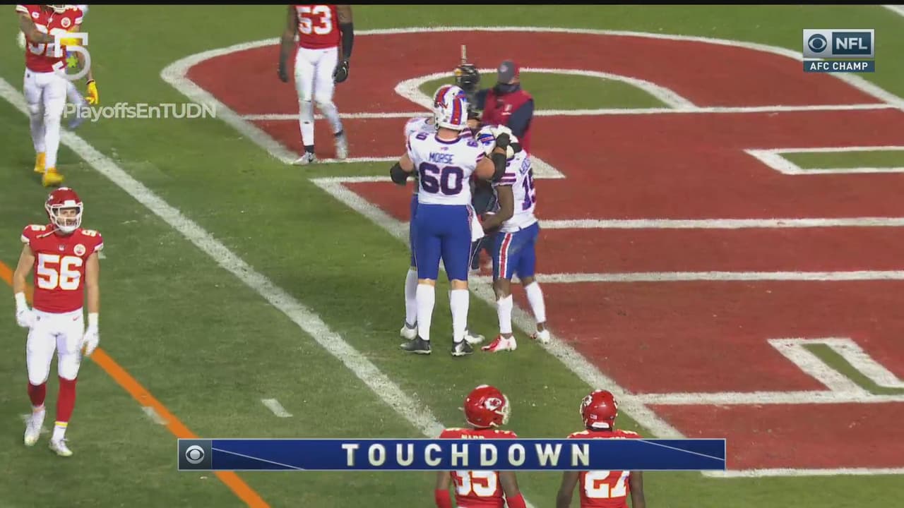 Por los Bills, Josh Allen lanzó el ovoide 48 ocasiones y completó 28 envíos para 287 yardas, un touchdown, una entega de balón y acumuló 88 yardads en siete acarreos.