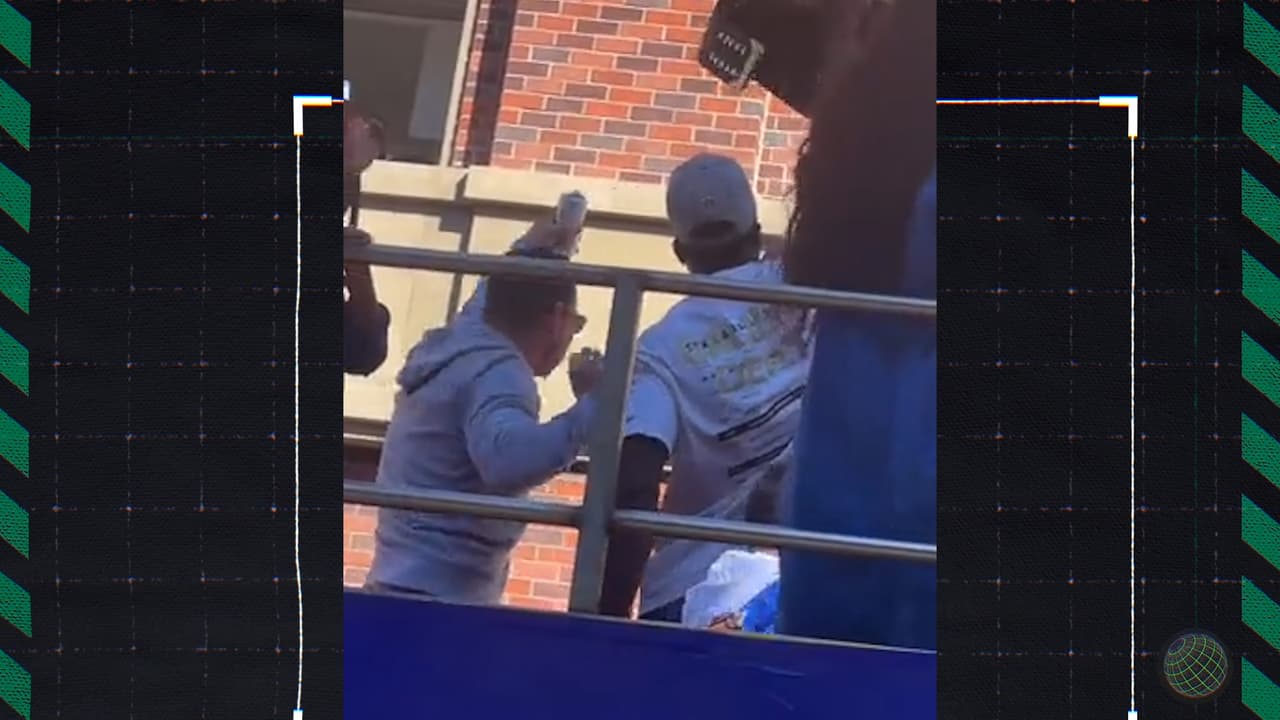 Un aficionado lanzó con éxito desde un edificio una lata de cerveza hacia el desfile de los campeones de la NFL.