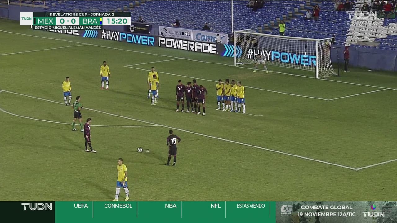 El delantero de México ejecutó una falta en los linderos del área, pero su tiro se fue por encima al 15’.