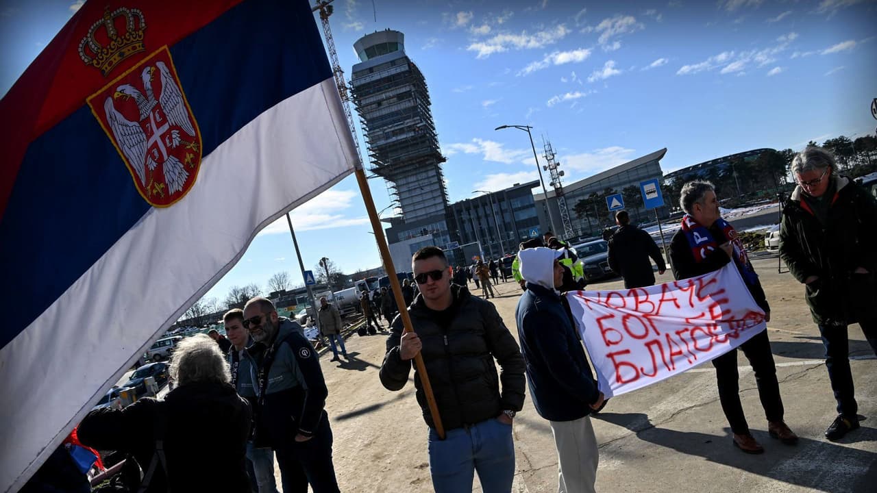 Varios centenares de seguidores, algunos con banderas de Serbia, se reunieron frente al edificio del aeropuerto de Belgrado para apoyarle con gritos como "Novak, eres nuestro campeón" y "Nole, Nole (el apodo de Djokovic)", pero no pudieron ver a su ídolo.