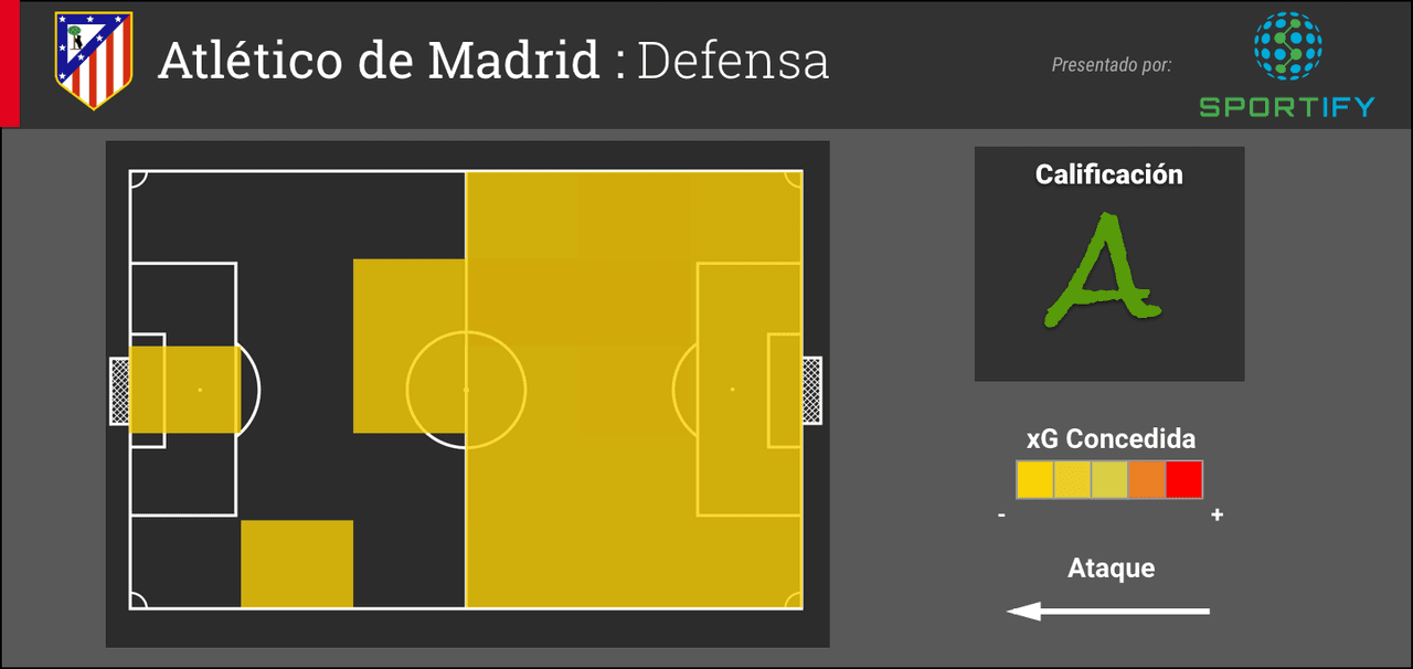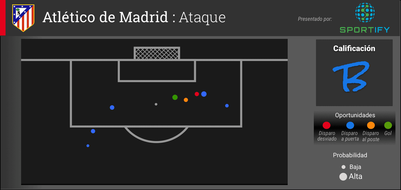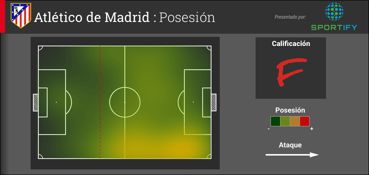 Los colchoneros fueron eficientes con su limitada posesión del balón. El equipo registró su peor porcentaje de posesión de la temporada (23%), y registró el número más bajo de la competencia en la cantidades de toques (403), pases intentados (200) y pases precisos (122). A pesar de las estadísticas menos deseables, el Atlético encontró el éxito por la banda derecha en sus intentos de mover la pelota hacia la portería.