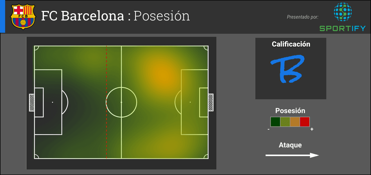 El Barcelona dominó el balón, pero no pudo romper la línea defensiva del Atléti. El Barcelona, completó 56 de 76 pases largos, una variación de la forma acostumbrada de jugar del equipo.