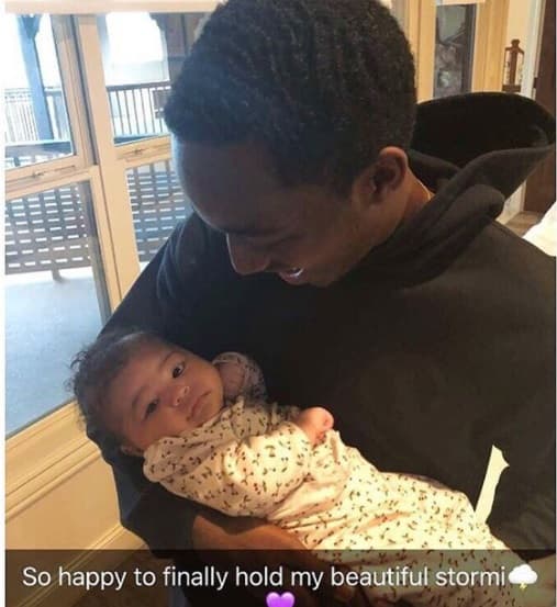 “Muy feliz de sostener finalmente a la bella Stormi en mis brazos”, anotó Joshua.