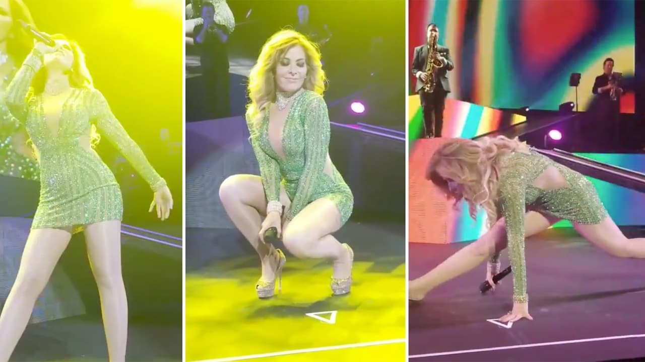 A sus 50 Gloria Trevi hace 'split' como de 20 (tienes que verlo), pero se le quedó la falda de cinturón