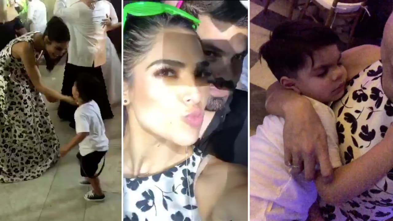 La presentadora viajó con su familia a Colombia para asistir al enlace nupcial de una de sus amigas y su hijo fue el más animado de la fiesta. Después de tanto baile, mira cómo el pequeño terminó rendido.