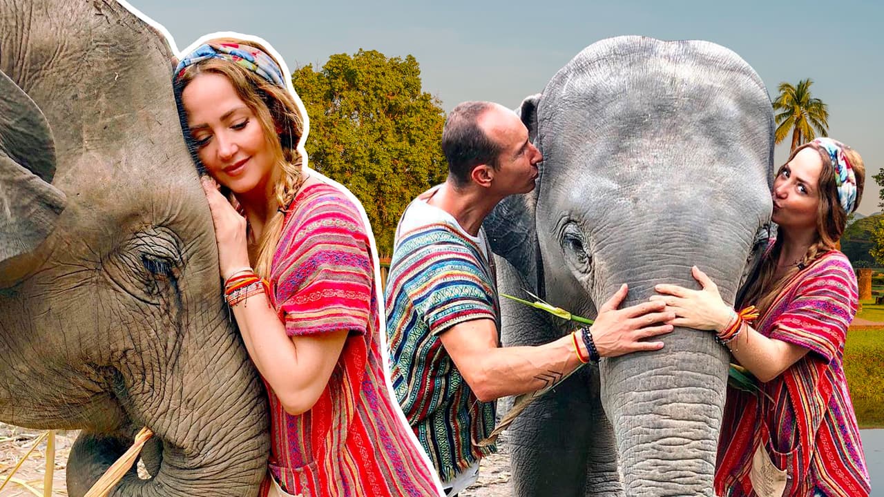 Andrea Legarreta y su tierno momento con unos elefantes bebés (pero con cautela ante lo salvaje)