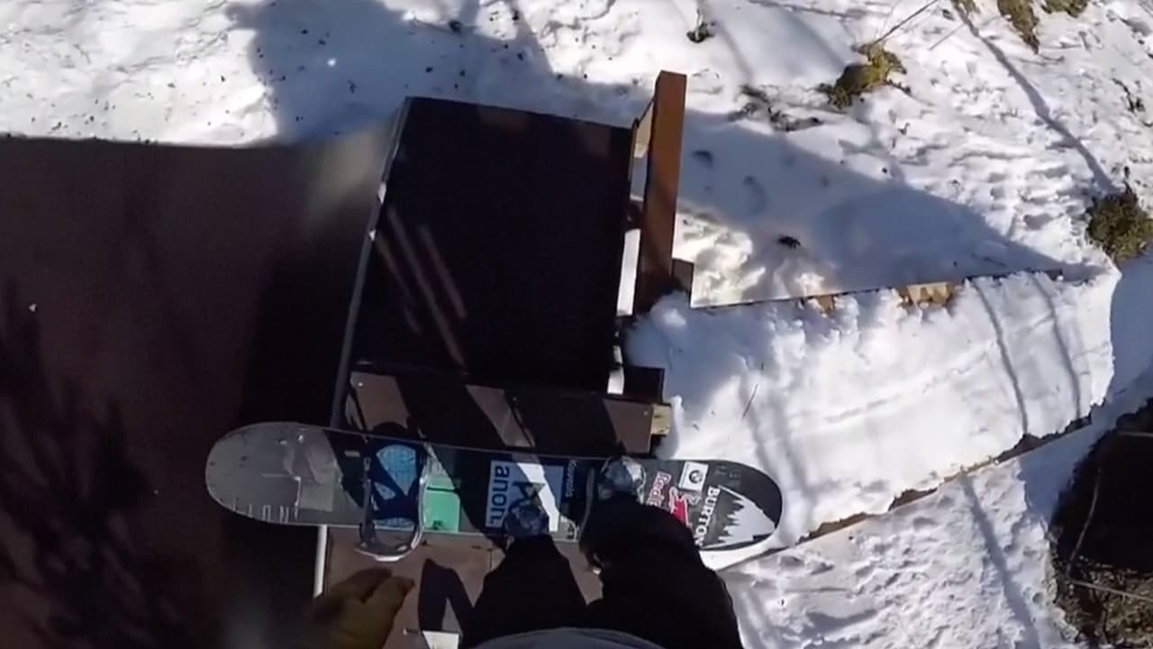 Ahora que no está en competencia, el esquiador de snowboard profesional, Roope Tonteni, aprovechó sus días de descanso para transformar el patio de su casa en una pista de obstáculos.