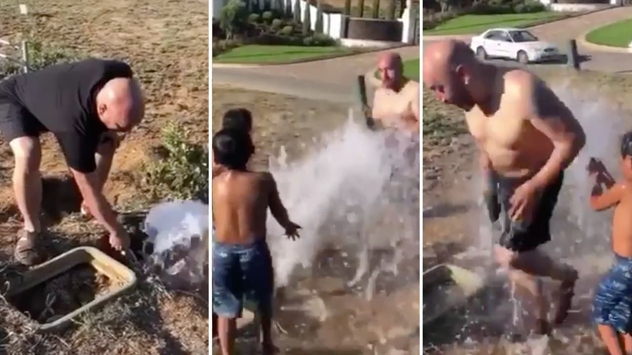 Aunque Lupillo Rivera vive en una zona con sequía severa abrió una llave pública para bañarse en plena calle