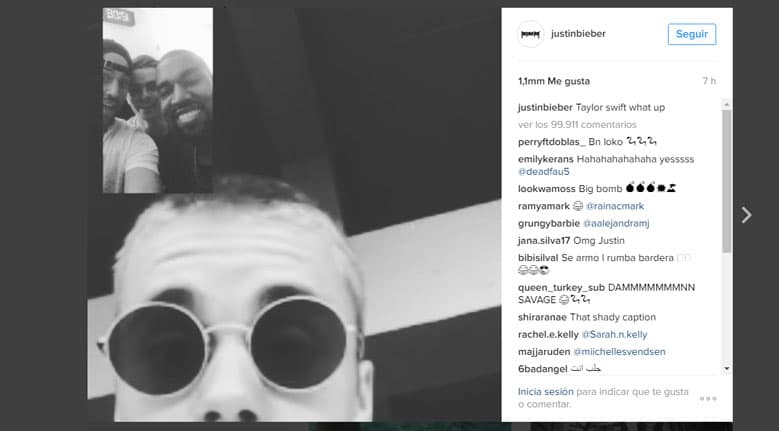 Bieber compartió una foto de un FaceTime que tuvo con Kanye West, junto a la imagen el mensaje: "Taylor Swift what up".