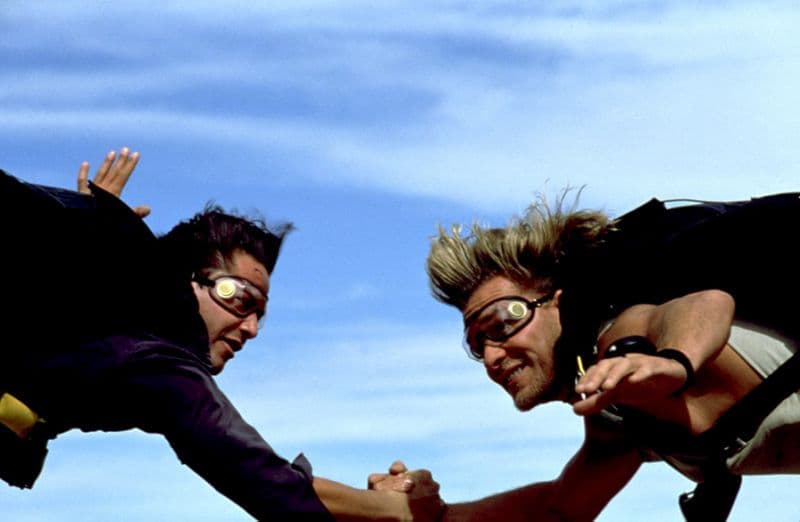 Una de las escenas más recordadas de la película es aquella en la que Johnny Utah salta desde un avión sin paracaídas y alcanza en el aire a Bodhi, que había saltado antes.