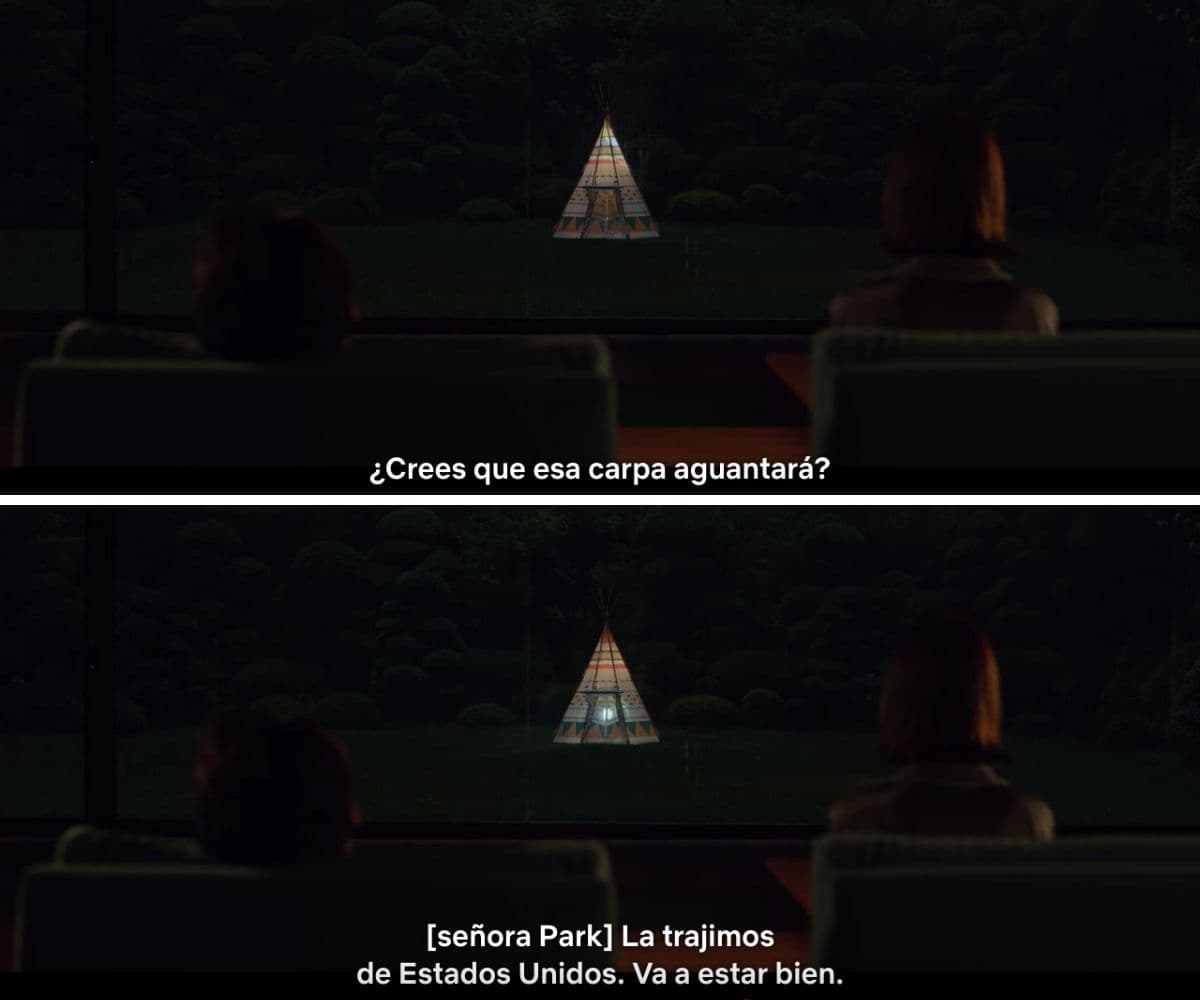 A lo largo de la película hay varios detalles que hacen evidente el amor que sienten los Park por EUA y uno de los más notables es cuando la Sra. Park argumenta que la carpa de Da-song es buena simplemente porque es estadounidense.