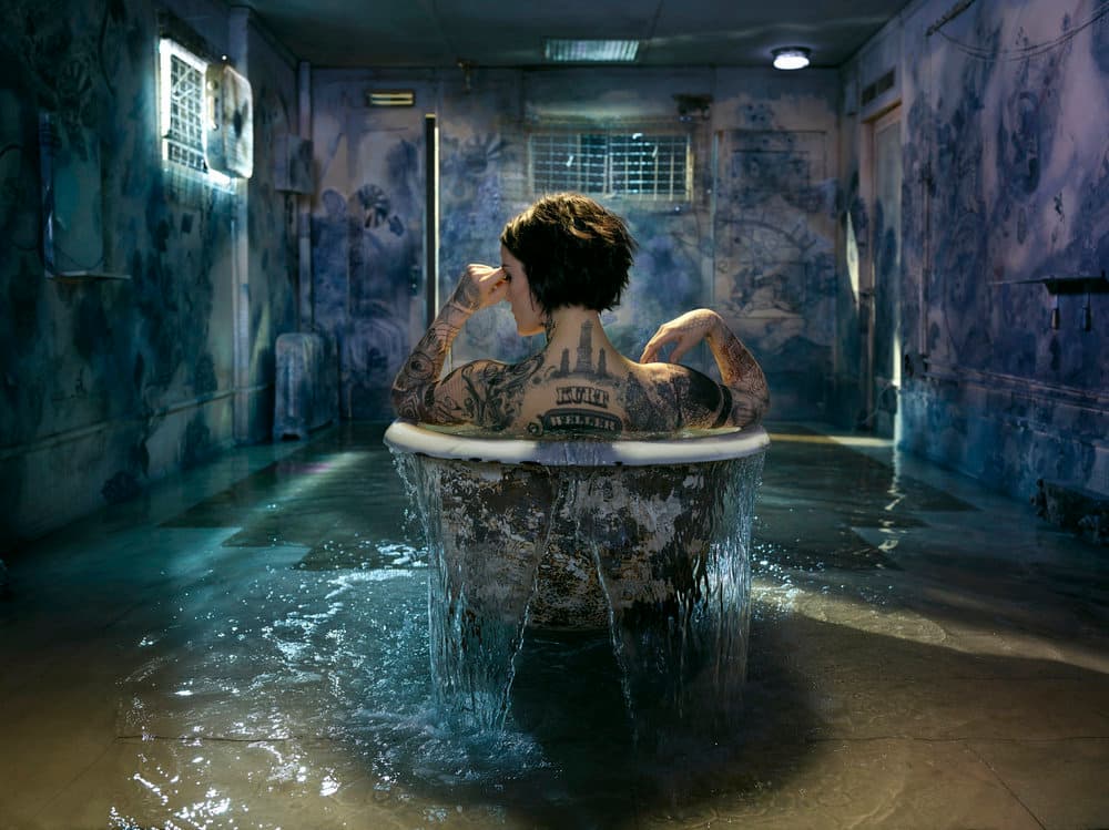En Legion, Michael (Paul Bettany) presume en su cuerpo varios pasajes bíblicos encriptados que se entrecruzan a través del torso y los brazos.