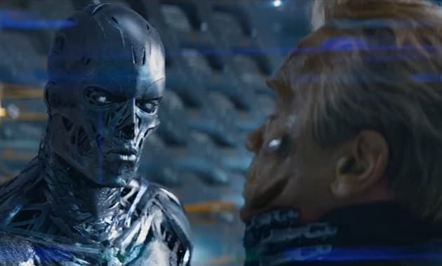 Cuando el T-850 es controlado por la T-X, es obligado a atacar a John Connor, pero para alargar la pelea y aumentar el dramatismo se hizo que el T-850 arrojase a Connor contra el suelo para sacarlo de la avioneta cuando era perfectamente capaz de quebrarle el cuello o atravesarle el pecho de un golpe.