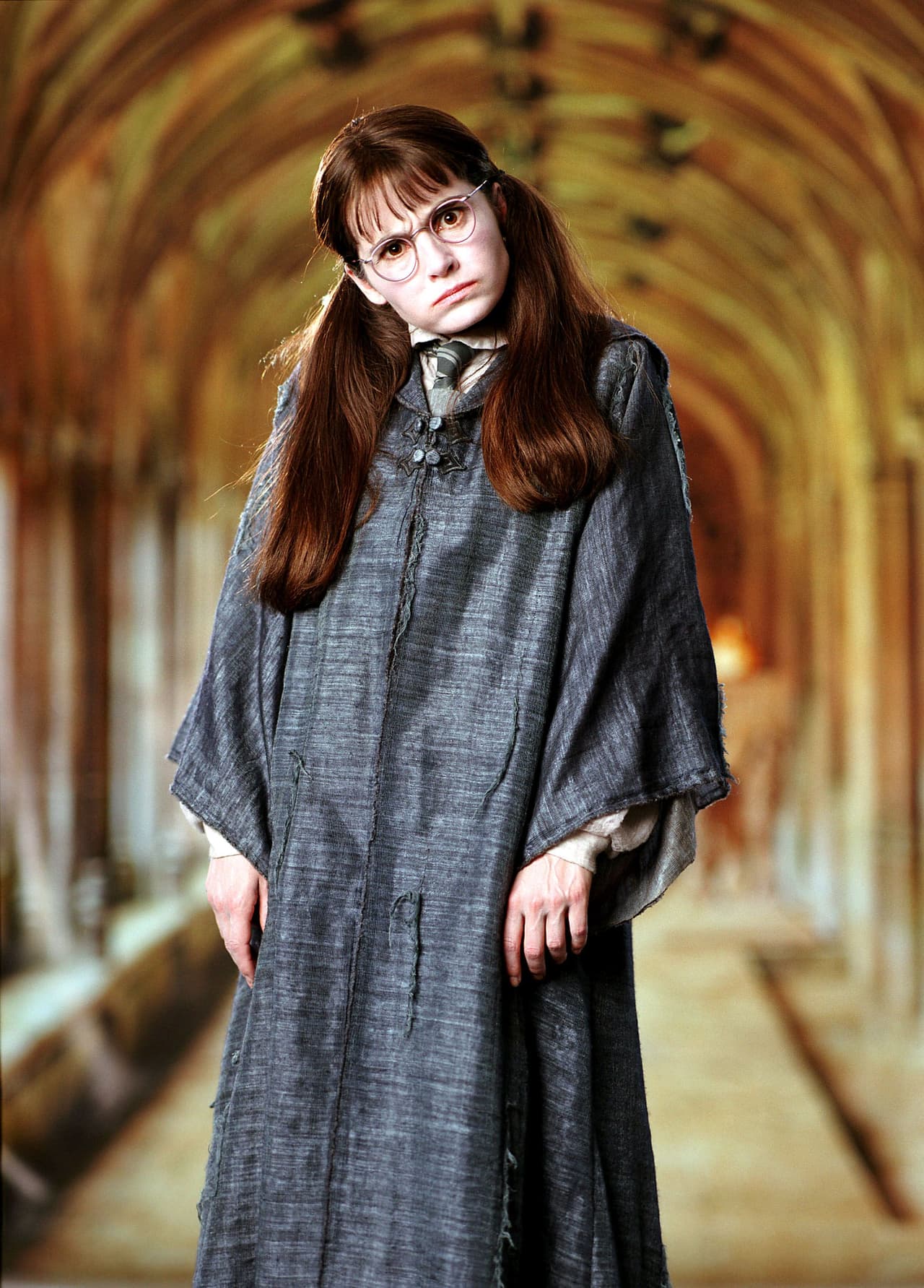 Seguro recuerdas a Myrtle, el fantasma de una antigua alumna de Hogwarts cuyo espíritu habita en los baños del colegio y que termina haciéndose amiga de Harry.