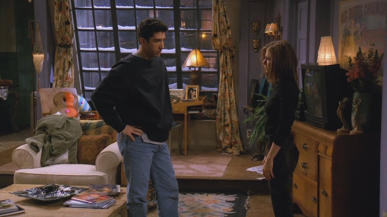 Y cómo olvidar el episodio 8 de la segunda temporada. Todo indicaba que la relación entre Ross y Rachel por fin sucedería, pero se arruina cuando Rachel descubre que Ross hizo una lista comparándolas a ella y a Julie.