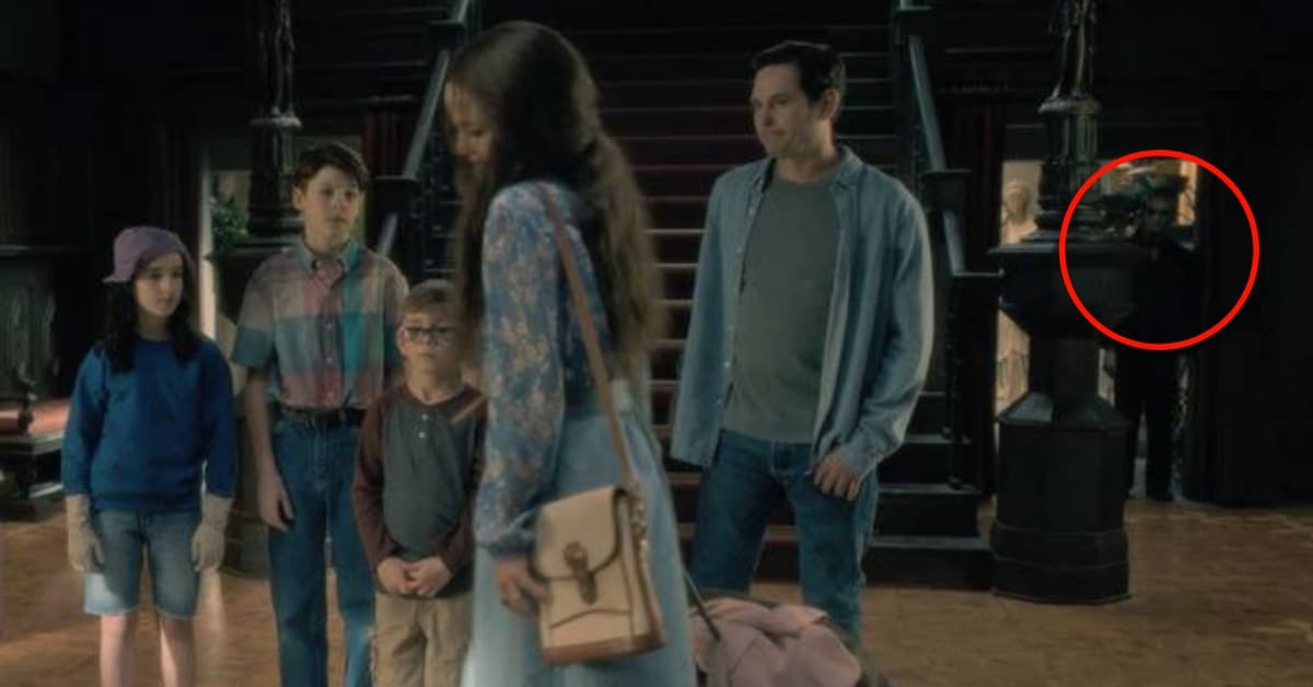 En este flashback a la infancia de los Crain notarás que hay más de cinco personas en la habitación.