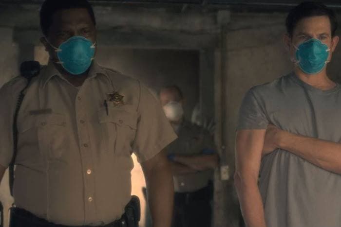En esta escena hay un cuarto ente supervisando la inspección (aunque no podemos asegurar que también lleve cubrebocas).