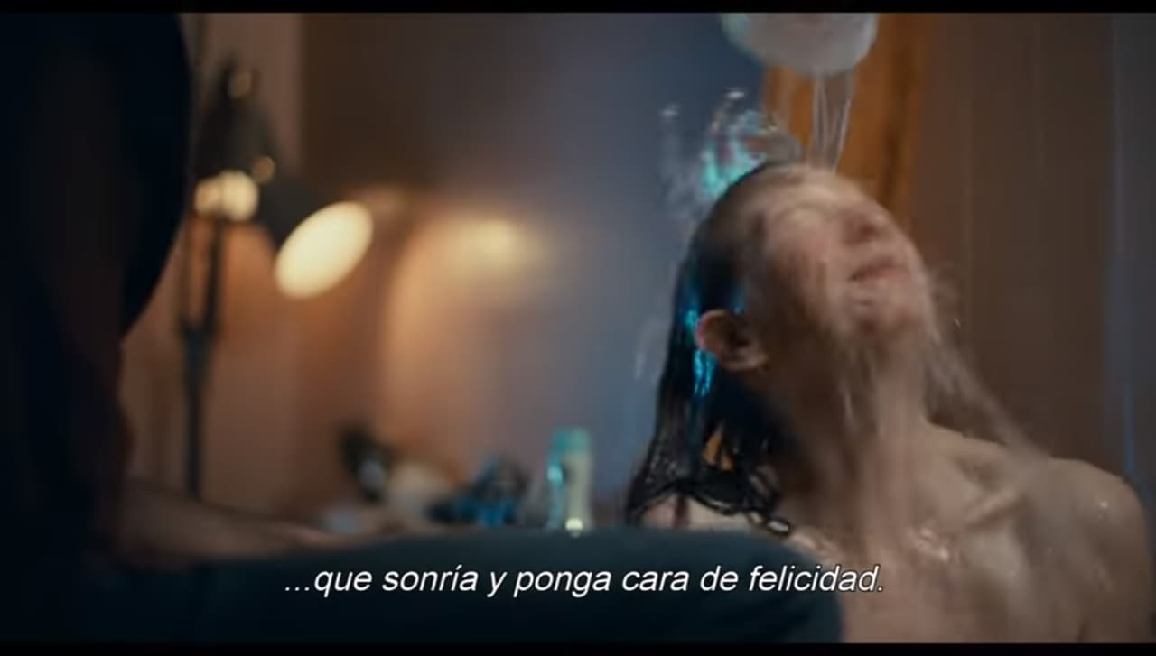 La escena sí llegó a los cines, pero lo que no aparece es cuando le echa agua en la cara a su madre, a modo de broma.