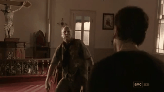 El par empezó a enfrentarse y finalmente Rick lo apuñaló, después de que este intentara asesinarlo. Volvió a la "vida" como caminante, pero fue asesinado de inmediato de un disparo en la cabeza. La interpretación le ganó los elogios de la crítica.