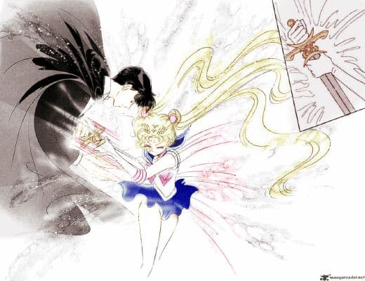 Esto enfurece a los villanos, y cuando logran someterla para liberar su Espejo de Sueños, se atestigua uno de los ataques más raros en la historia de un anime shojo.