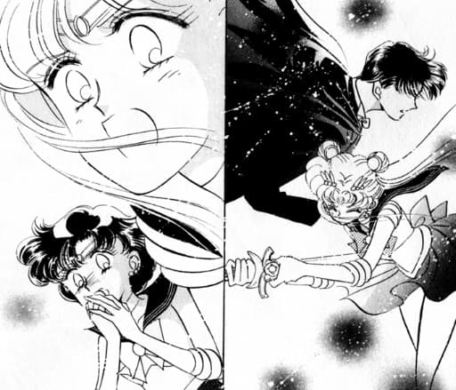 Las Sailor Star Lights buscan sin descanso a su princesa: Kakyuu. Aunque en el anime ésta muere de forma "poética" con la mera extracción de su semilla estelar, en el manga aprendemos que ella también es una Sailor... y es TAN mortal como cualquiera.