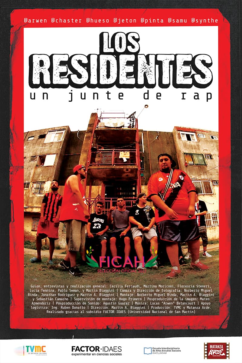 Sinopsis: “Los Residentes” es una reunión de jóvenes raperos de distintos barrios marginales de Buenos Aires, que gracias a las redes sociales procesan sus experiencias, tejen vínculos, elaboran interpretaciones sobre sí mismos y su entorno a través del rap.