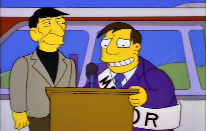 Esta sí no la vimos venir. El peor alcalde en la historia de la televisión animada, Joseph “Joe” Quimby (el alcalde Diamante) fue basado en el presidente John F. Kennedy. Se tomó lo “peor” de él: su encanto que conquistó a tantas mujeres. Su propia esposa, Martha, tiene un claro parecido a Jacqueline Kennedy.
