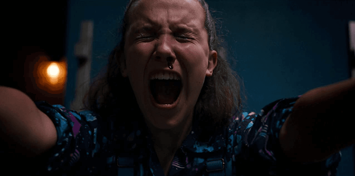 En la tercera temporada de Stranger Things, experimentamos uno de los momentos más intensos y de poder de Eleven, interpretada por Millie Bobby Brown, cuando se enfrenta a Billy en el sauna. Después del combate, Eleven se deja caer en los brazos de Mike (Finn) mientras rompe en llanto.