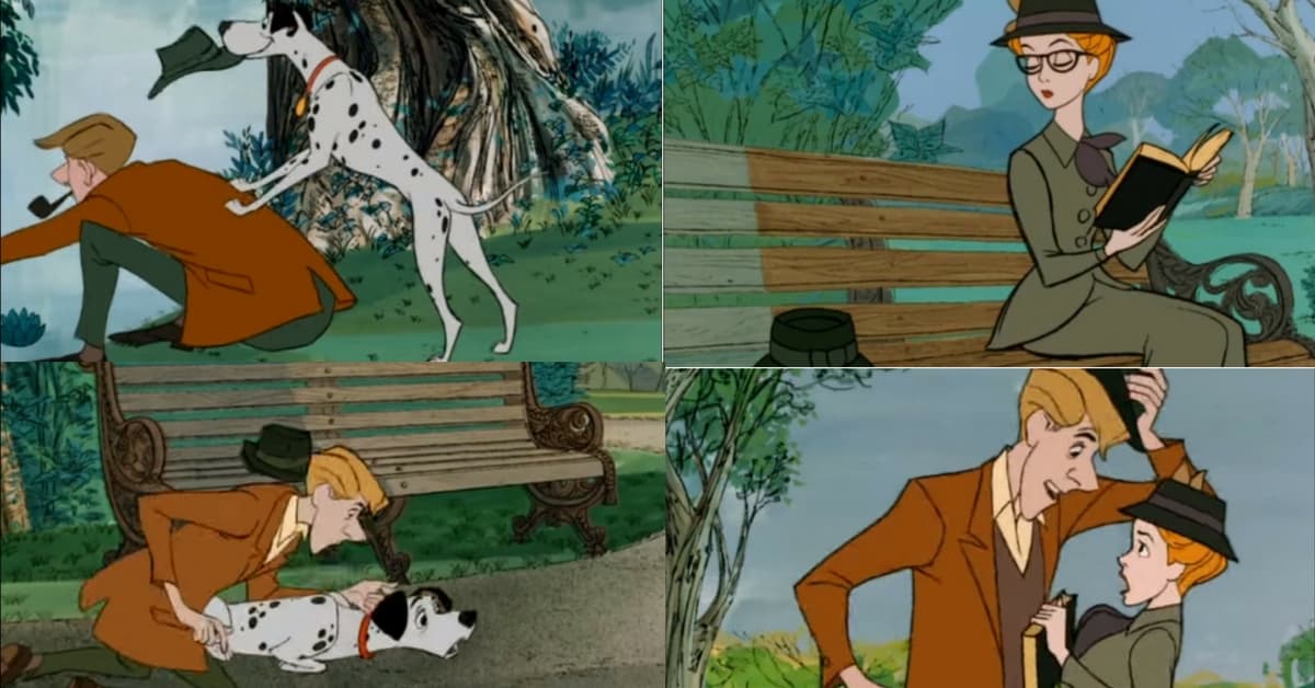 Pongo le quita su sombrero a Roger y lo deja en la banca en donde está sentada Anita. Momentos después, la chica se retira con Perdita y el sombrero sigue ahí. Pongo y Roger se acercan y él no toma su sombrero, lo deja en la banca. Cuando Pongo corre hacia Anita y enreda a los dos humanos con su cadena, Roger se quita el sombrero para disculparse. ¿¡De dónde lo sacó!?