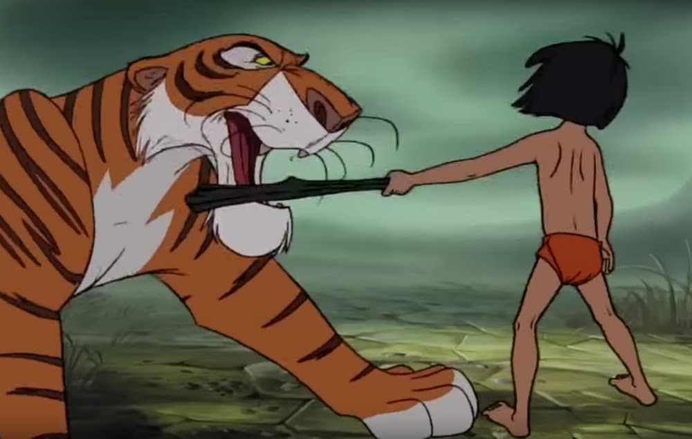 Shere Khan definitivamente es un goloso desmedido. Siendo el verdadero rey de la selva, ya que el león vive en la sabana y no en la selva, un tigre como él podría devorar a cualquier criatura mucho más carnosa y jugosa que Mowgli. De hecho, Shere Khan significa «tigre rey», «líder militar» o « rey de la selva» en varias lenguas asiáticas.Sin embargo, Shere Khan está obsesionado con comerse al flacucho y adorable cachorro humano.