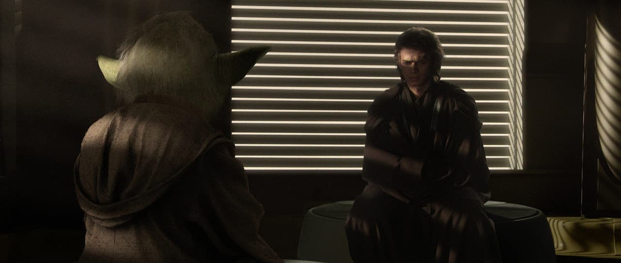 La mayor parte de las líneas de diálogo de Yoda al comienzo pertenecían a Anakin Skywalker, personaje que aún no había sido concebido como el futuro Darth Vader, y era más bien la figura paterna fantasmal que alentaba a nuestros protagonistas.