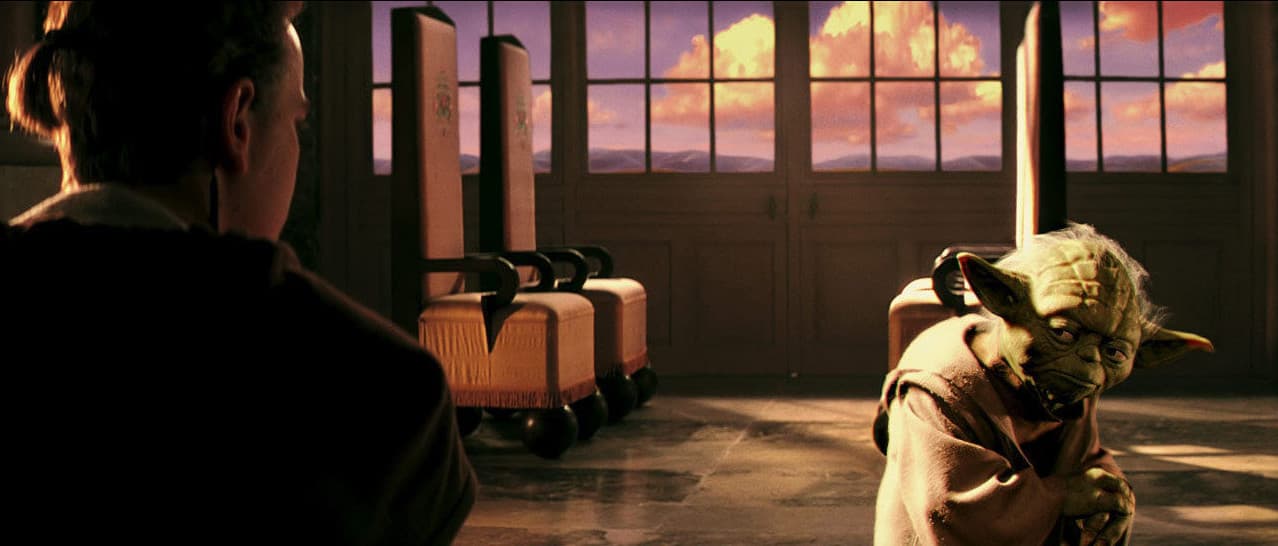 Aunque no vimos a Yoda completamente en CGI hasta Attack of the Clones, hay una pequeña escena en Phantom Menace en donde se puede ver a la distancia un modelo en CGI del personaje. Hubiera sido difícil hacer las escenas de pelea con una marioneta, ya que previamente los modelos no podían sostener sus sables.