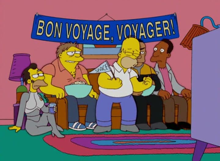 En otro episodio, se ve a Homero llorando junto a sus amigos, mientras ven el final de Star Trek: Voyager. Lenny sale vestido como Siete de Nueve.